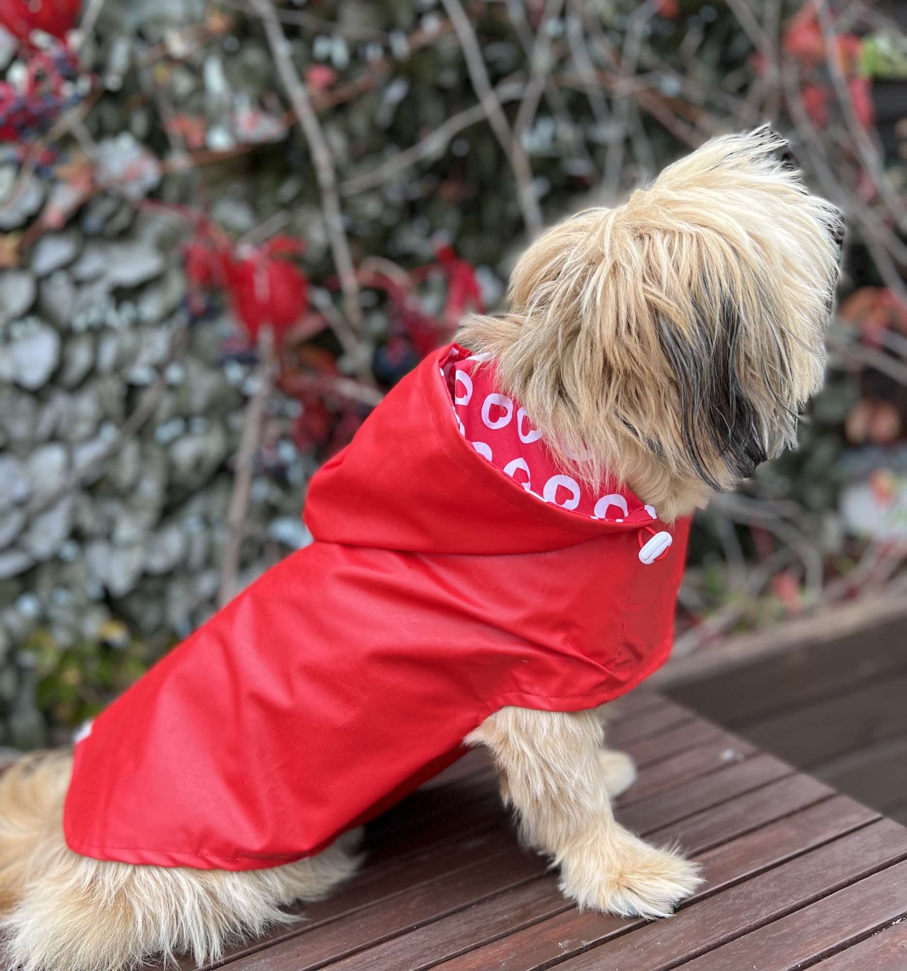 - ubrania przeciwdeszczowe chronią psa przed zmoknięciem, zabrudzeniem, a pośrednio również przed przeziębieniem i infekcjami związanymi z osłabieniem organizmu.